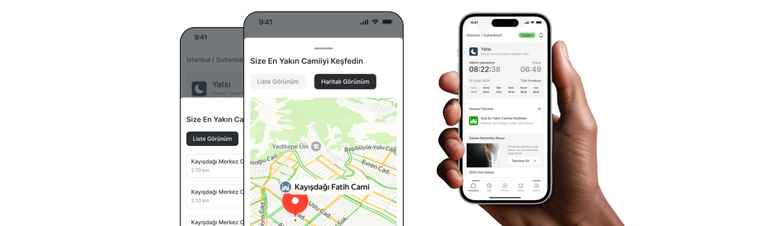 Dini yaşantını kolaylaştıracak birçok özelliği bir arada sunuyoruz. Konumuna göre ezan vakitlerini takip edebilir, vakit yaklaştıkça bildirimlerle haberdar olabilirsin. Günlük zikirlerini düzenli olarak takip edebilir, kendine özel bir ibadet alışkanlığı oluşturabilirsin. Yakınındaki camilere ister liste görünümünde ister harita üzerinden kolayca ulaşabilir, yol tarifi alabilirsin. Bulunduğun konuma göre çalışan pusula sayesinde Kıble yönünü hızlı ve doğru bir şekilde bulman da mümkün.